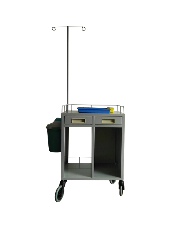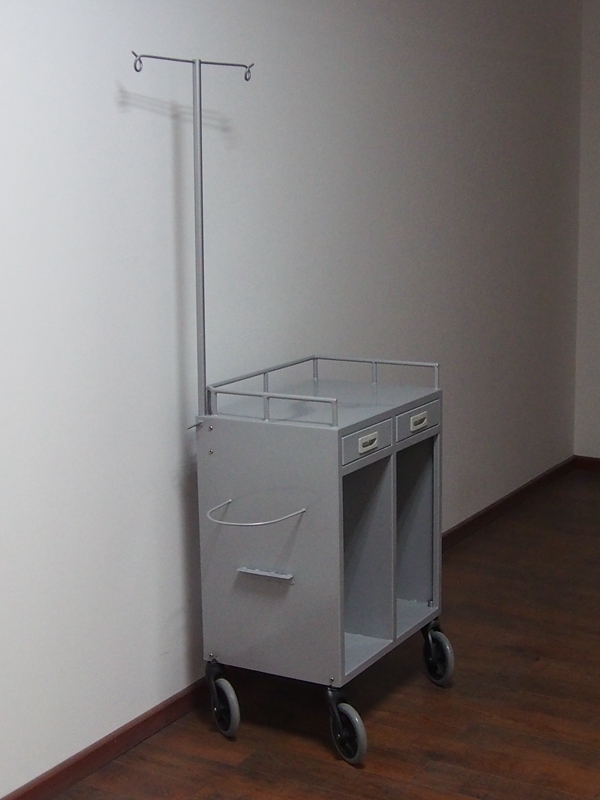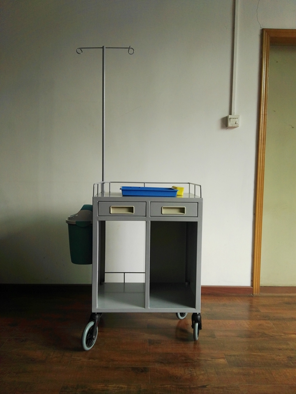 产品结构:框架、抽屉、塑料垃圾桶、6寸灰色PU发泡轮、输液支架